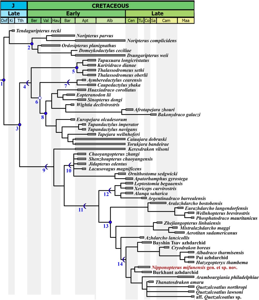 Références : Zhou, X.; Ikegami, N.; Pêgas, R.V.; Yoshinaga, T.; Sato, T.; Mukunoki, T.; Otani, J.; Kobayashi, Y., 2024, Reassessment of an azhdarchid pterosaur specimen from the Mifune Group, Upper Cretaceous of Japan. Cretaceous Research. 167: 106046.