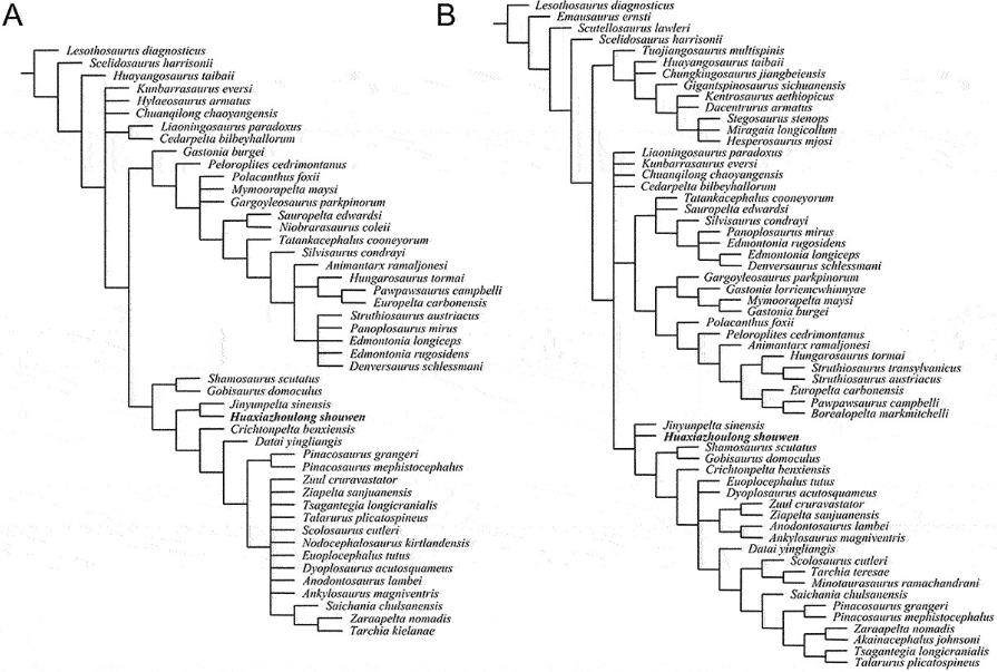 L’analyse phylogénétique de Zhu et ses collègues classe Huaxiazhoulong comme un ankylosauridé basal très proche de Jinyunpelta. Ces résultats contrastent avec plusieurs analyses précédentes qui plaçaient Jinyunpelta comme un ankylosauridé dérivé, membre d’Ankylosaurinae.