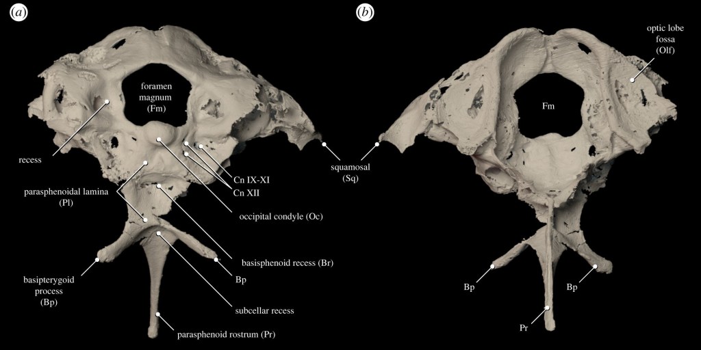 Chiappe, L.M.; Navalón, G.; Martinelli, A.G.; Nava, W.; Field, D.J., 2022, Fossil basicranium clarifies the origin of the avian central nervous system and inner ear. Proceedings of the Royal Society B: Biological Sciences. 289: 20221398.