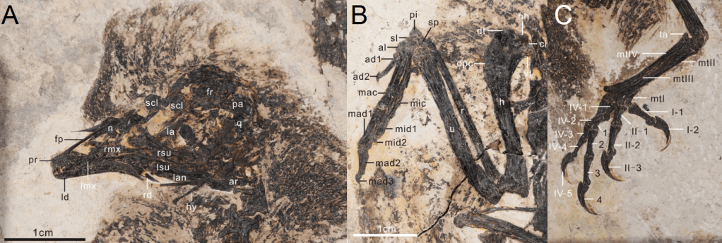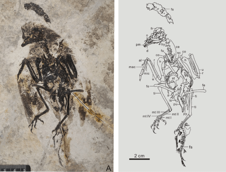 Référence : Shen, C.; Clark, A.D.; Fang, H.; Chen, S.; Jiang, H.; Ji, Q.; O’Connor, J.K., 2024, A new diminutive species of bohaiornithid enantiornithine (Aves: Ornithothoraces) from the Lower Cretaceous Jehol Group, northern China. Scientific Reports. 14(1): 31363.