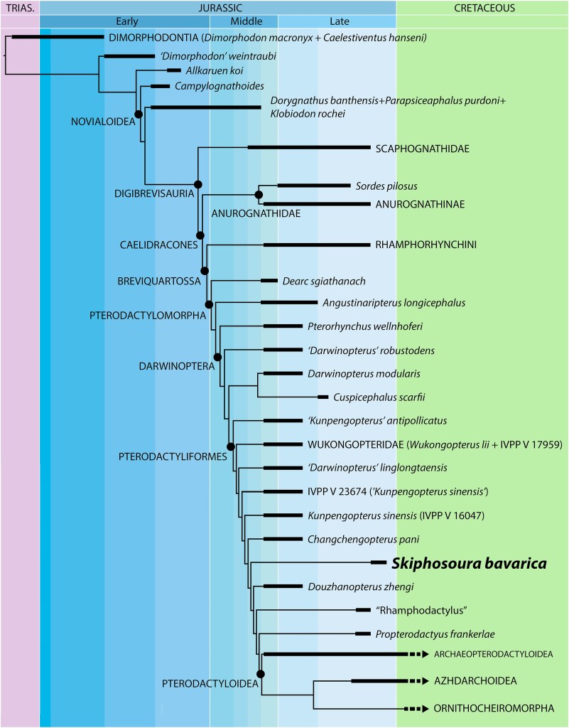 En 2015, des fouilles dans la carrière de Schaudiberg, dans le Tithonien de la formation géologique de Mörnsheim (Bayern, Allemagne), mirent au jour un squelette de ptérosaure. Hone et ses collègues décrivent ainsi ce squelette comme l’holotype d’un nouveau taxon qu’ils baptisent Skiphosoura (« queue en épée », en référence à sa morphologie caudale courte et rigide), avec S. bavarica pour espèce.