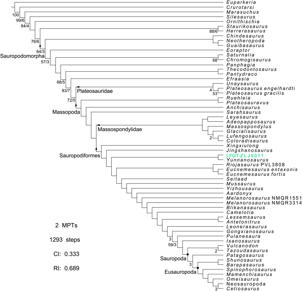Référence : Zhang, Q.; Jia, L.; Wang, T.; Zhang, Y.; You, H., 2024, The largest sauropodomorph skull from the Lower Jurassic Lufeng Formation of China. PeerJ. 12: e18629.