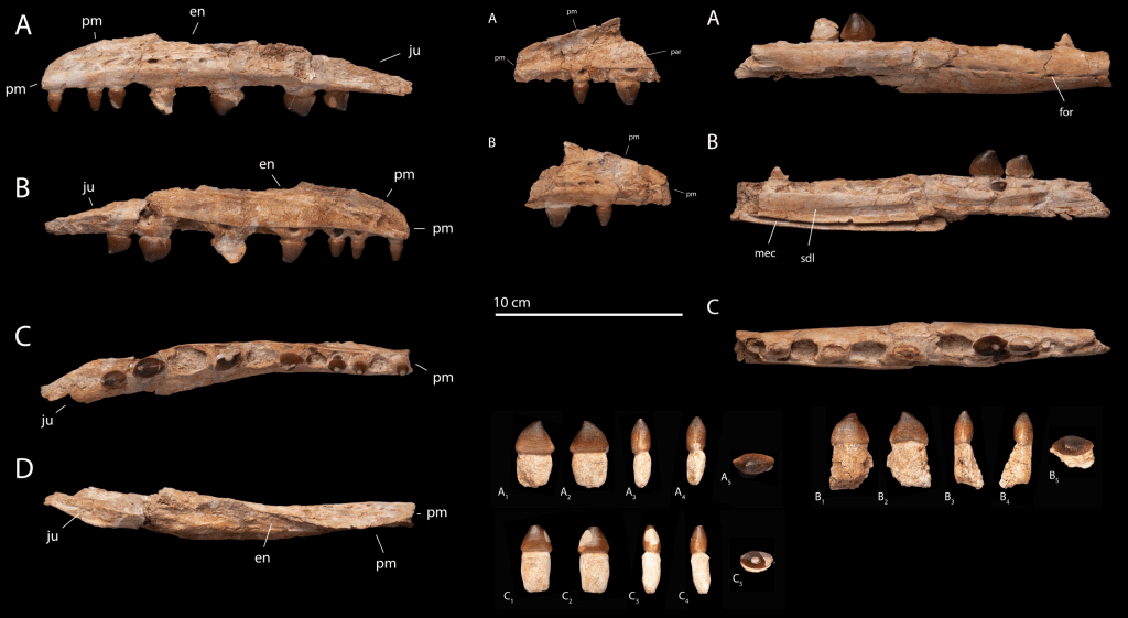 Référence : Longrich, N.R.; Pereda-Suberbiola, X.; Jalil, N.-E.; Bardet, N., 2024, A New Species of the Durophagous Mosasaurid Carinodens from the Late Maastrichtian Phosphates of Morocco and Implications for Maastrichtian Mosasaurid Diversity. Diversity. 17: 25.