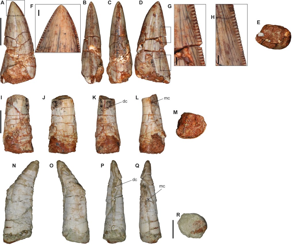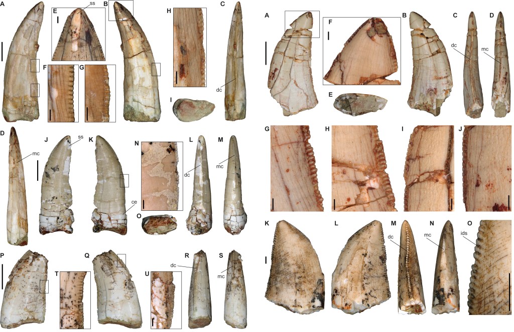 Référence : Malafaia, E.; Escaso, F.; Coria, R.A.; Pérez-García, A.; Ortega, F., 2024, Theropod teeth from the Upper Cretaceous of central Spain: assessing the paleobiogeographic history of European abelisaurids. Cretaceous Research. 168: 106072.