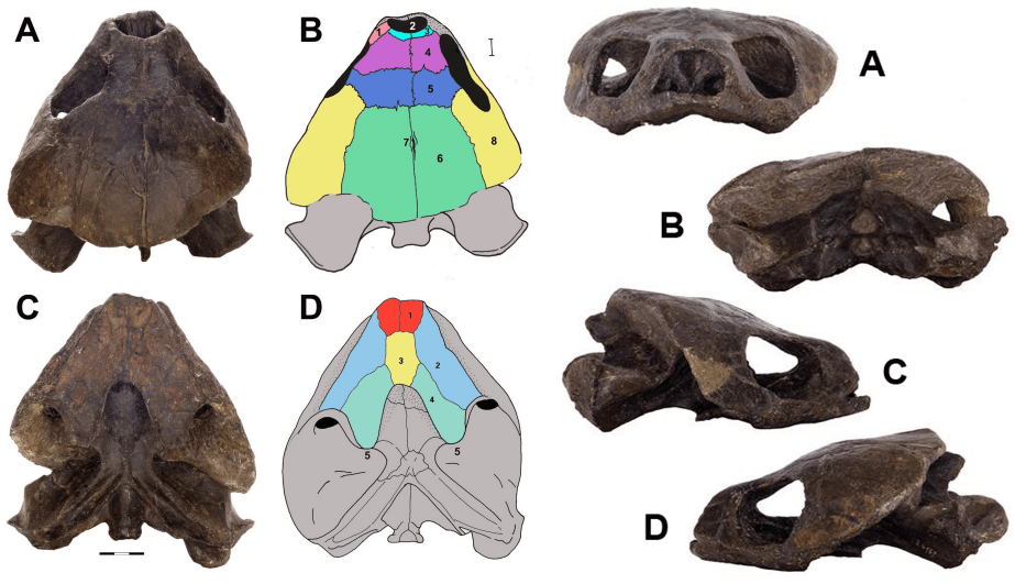 Références : Karl, H.-V.; Safi, A.; Tichy, G., 2024, Cranial anatomy and holotype reconstruction of the Late Cretaceous turtle, Australobaena chilensis from the Quiriquina Formation, Chile. Mesozoic: 1(4): 474-482.